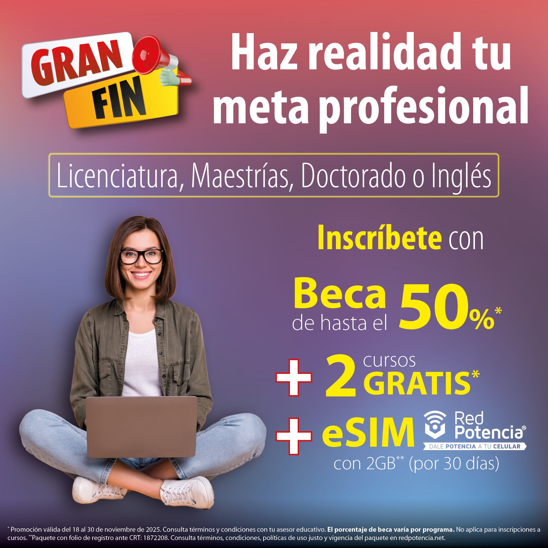 Por tiempo limitado podrás asegurar tu futuro profesional por tan solo $500 pesos quincenales. Además recibir uno de los más de 10 cursos en línea ¡completamente gratis!